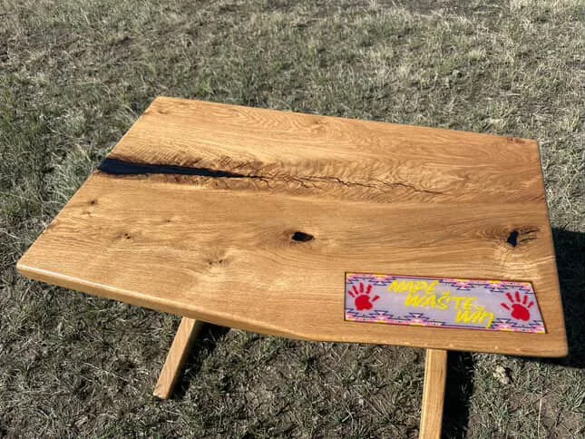 Bud Ducheneaux is the owner of DX Woodworking, a craft-focused business specializing in furniture made primarily from reclaimed trees. His work spans a wide range—from dining tables and kitchen islands to picture frames, cribbage boards, and even earrings. Whenever possible, Bud incorporates Native themes such as ledger art and beadwork into his pieces, blending cultural expression with the raw beauty of natural wood. He is known for preserving the live edge of the wood and embracing natural “defects,” which he often enhances with colored resins and wood inlays. Rather than staining, Bud allows the natural grain and color of each piece to speak for itself, staying true to the unique character of the materials he works with. While he acknowledges that woodworking may not always fit the conventional mold, he is honored to be considered for opportunities that value creativity and cultural craftsmanship.