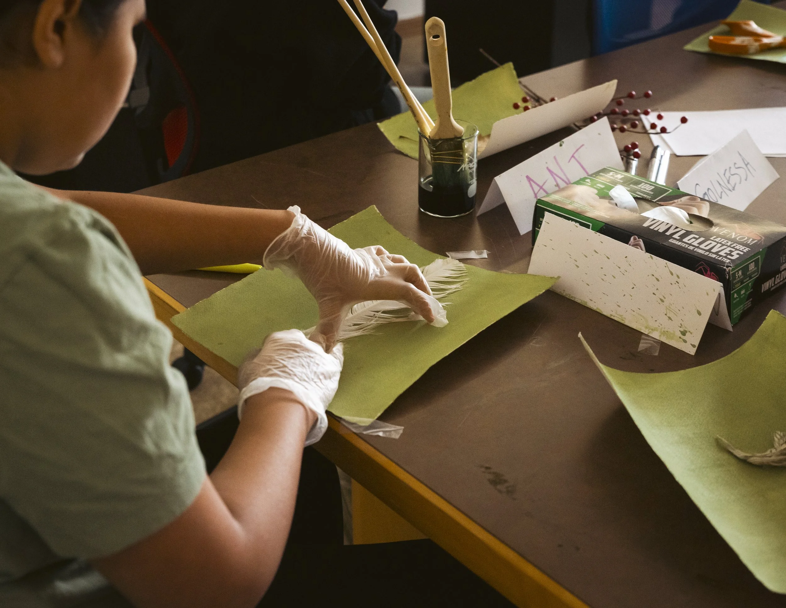 It truly was an experience to work with cyanotype not only for the students but as well as the fellow employees of Oyáte Studio. Seeing the actual process of cyanotype truly was fun and engaging! This workshop gave students a new type of art media and techniques to work with and learn from. Down to learning to sell and the costs of anything, @four.bands taught the students a little insight on business planning.